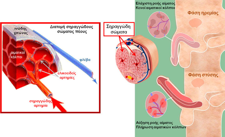 Το αντρικό μόριο, παρότι ευκίνητο σε ηρεμία (χάλαση), γίνεται σκληρό κι ευθύ με τον ερωτικό ερεθισμό, αφού γεμίζει με αίμα....